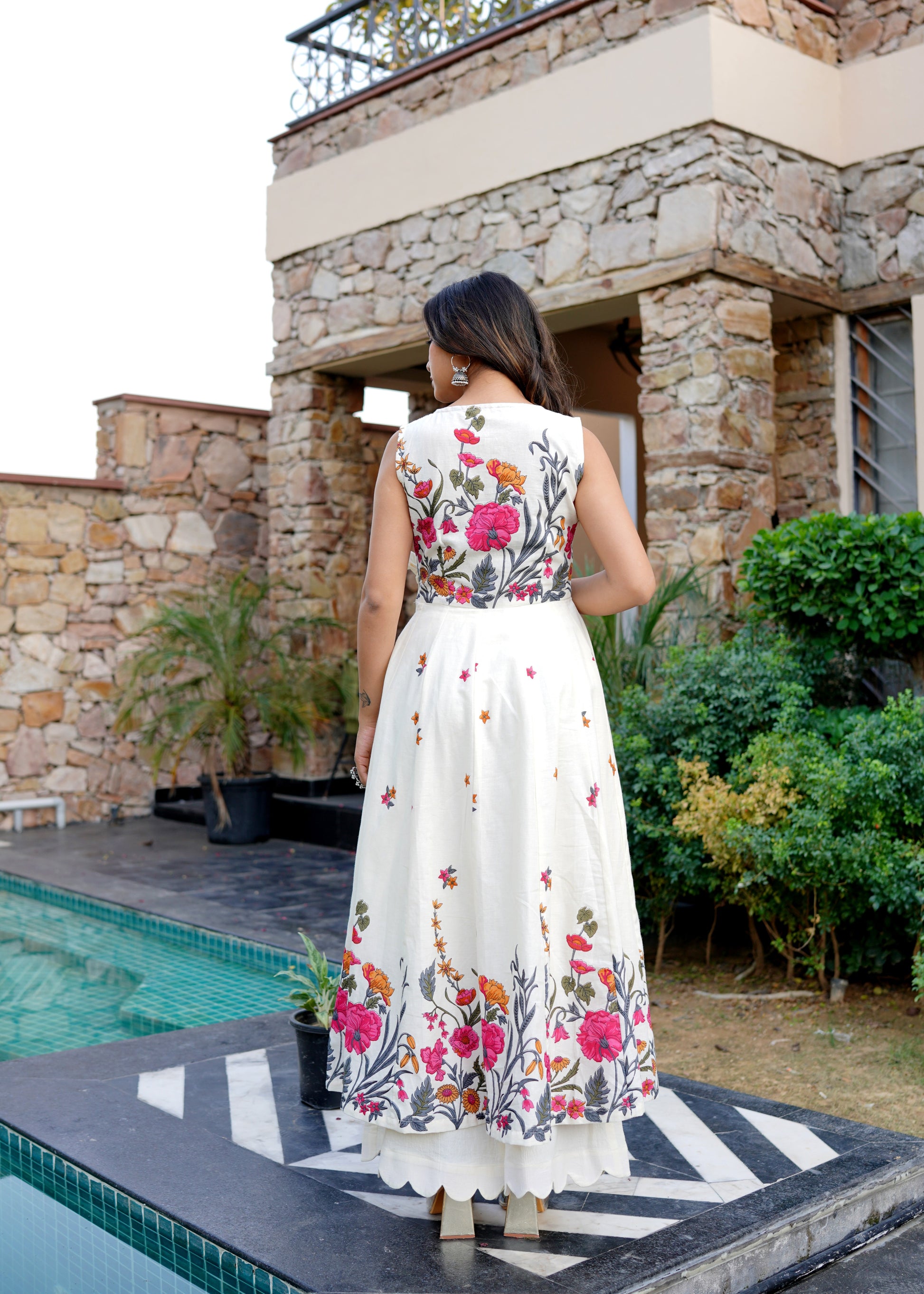 Paired with 40-inch cotton palazzos featuring scalloped hems, this set balances traditional charm with contemporary style. Vamika is perfect for daytime celebrations, brunches, or summer gatherings — light, breathable, and beautifully expressive.